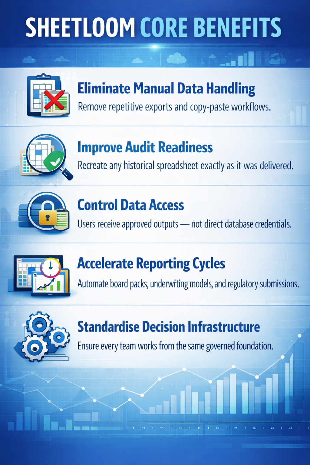 Sheetloom turns spreadsheet-based workflows into governed, reproducible decision infrastructure.